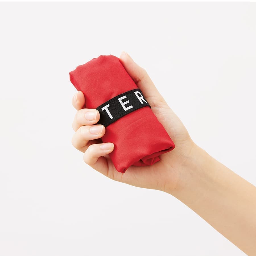 また、クルリトシリーズの最大の特徴であるゴムバンドがついており、未使用時にはくるりと丸めてコンパクトな手のひらサイズにできます。
