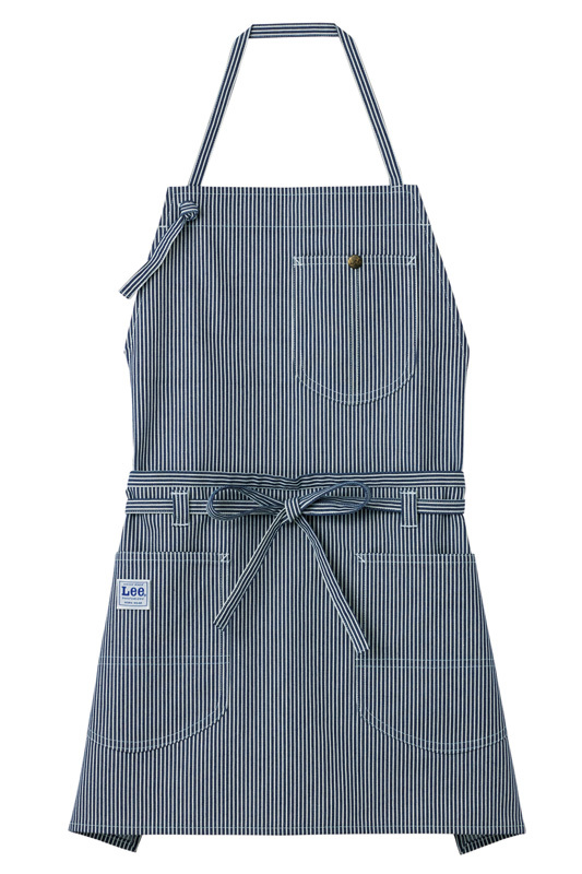 胸当てエプロンと腰巻きエプロンの両方使いが出来る2WAYエプロン。Lee独特なポケットの形が特徴的。ストレッチ性のあるデニム・ヒッコリーの2素材展開。